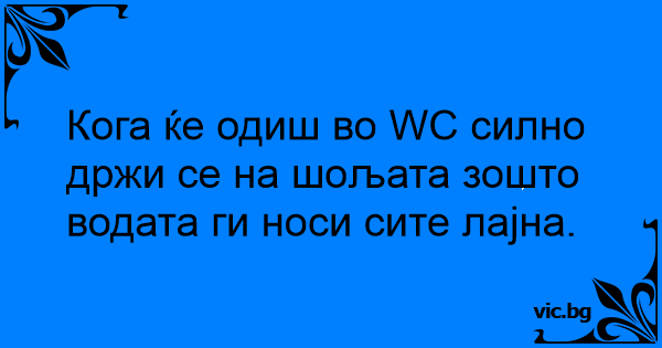 Кога ќе одиш во WC силно држи се на шољата зошто водата ги носи сите лајна.