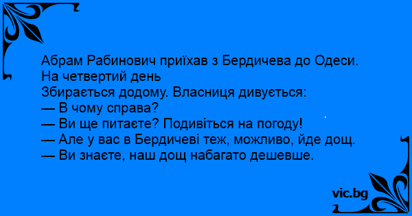 Абрам Рабинович приїхав з Бердичева до Одеси. На четвертий день