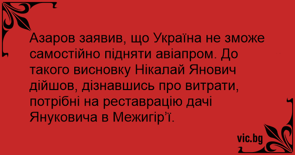 Азаров заявив, що Україна не зможе самостійно підняти авіапром. До такого висновку Нікалай Янович дійшов, дізнавшись про витрати, потрібні на реставрацію дачі Януковича в Межигір’ї.