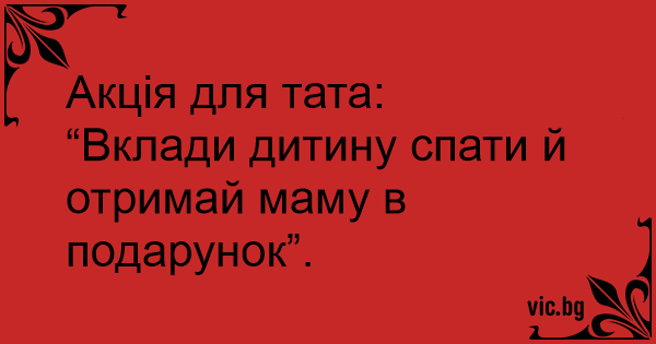 “Вклади дитину спати й отримай маму в подарунок”.