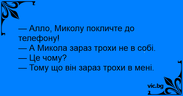 — Алло, Миколу покличте до телефону!