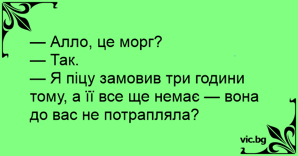 — Я піцу замовив три години тому, а її все ще немає — вона до вас не потрапляла?