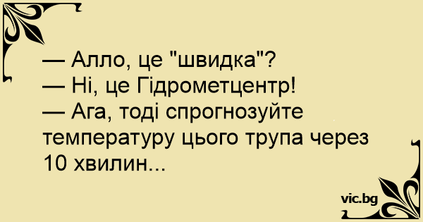 — Ага, тоді спрогнозуйте температуру цього трупа через 10 хвилин...