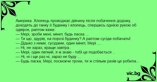 — Будь ласка, Мері, посмокчи трохи, ти ж стільки разів це робила для мене і моїх товаришів ...