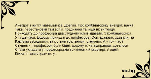 Анекдот з життя математиків. Довгий. Про комбінаторику анекдот, наука