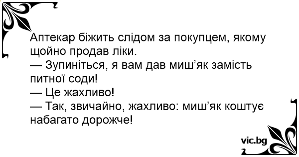 — Зупиніться, я вам дав миш’як замість питної соди!