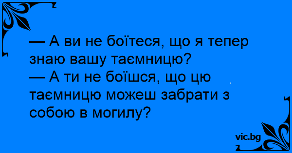 — А ти не боїшся, що цю таємницю можеш забрати з собою в могилу?