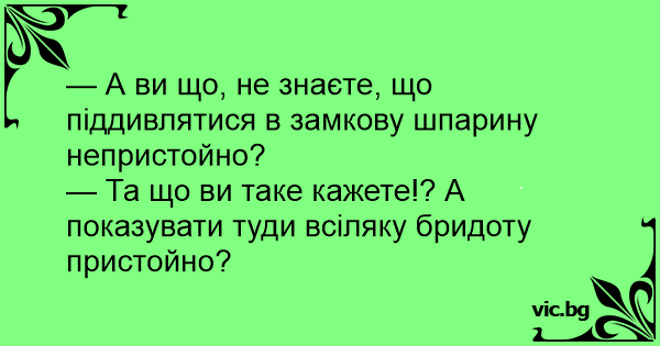 — А ви що, не знаєте, що піддивлятися в замкову шпарину непристойно?