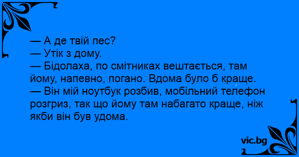 — Він мій ноутбук розбив, мобільний телефон розгриз, так що йому там набагато краще, ніж якби він був удома.
