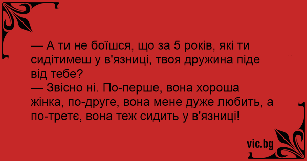 — А ти не боїшся, що за 5 років, які ти сидітимеш у в'язниці, твоя дружина піде від тебе?