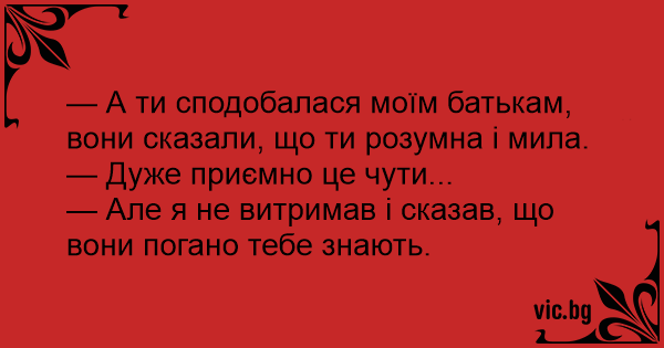 — А ти сподобалася моїм батькам, вони сказали, що ти розумна і мила.