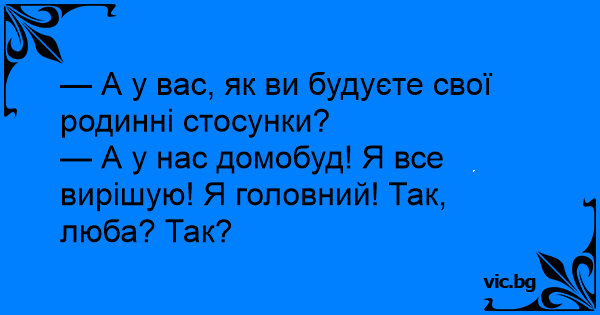 — А у нас домобуд! Я все вирішую! Я головний! Так, люба? Так?
