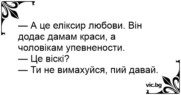 — А це еліксир любови. Він додає дамам краси, а чоловікам упевнености.