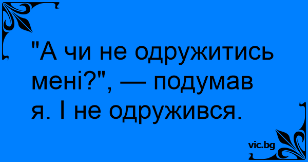"А чи не одружитись мені?", — подумав я. І не одружився.