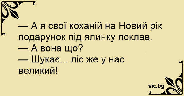 — А я свої коханій на Новий рік подарунок під ялинку поклав.