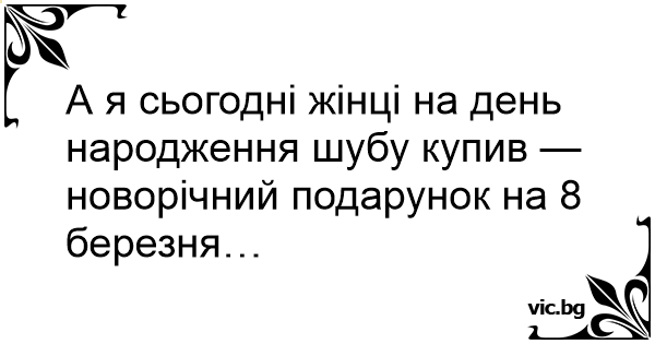 А я сьогодні жінці на день народження шубу купив — новорічний подарунок на 8 березня…