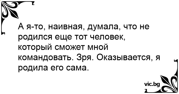 А я-то, наивная, думала, что не родился еще тот человек, который сможет мной командовать. Зря. Оказывается, я родила его сама.
