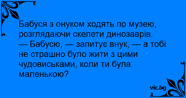 — Бабусю, — запитує внук, — а тобі не страшно було жити з цими чудовиськами, коли ти була маленькою?