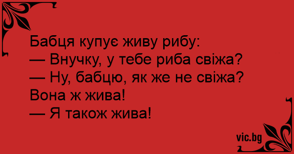 — Ну, бабцю, як же не свіжа? Вона ж жива!