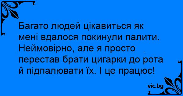 Багато людей цікавиться як мені вдалося покинули палити. Неймовірно, але я просто перестав брати цигарки до рота й підпалювати їх. І це працює!