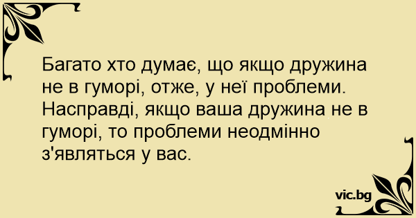 Насправді, якщо ваша дружина не в гуморі, то проблеми неодмінно з'являться у вас.