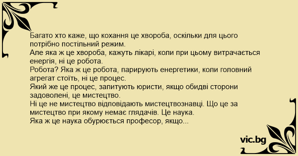 Але яка ж це хвороба, кажуть лікарі, коли при цьому витрачається енергія, ні це робота.