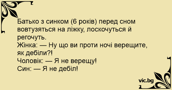 Жінка: — Ну що ви проти ночі верещите, як дебіли?!
