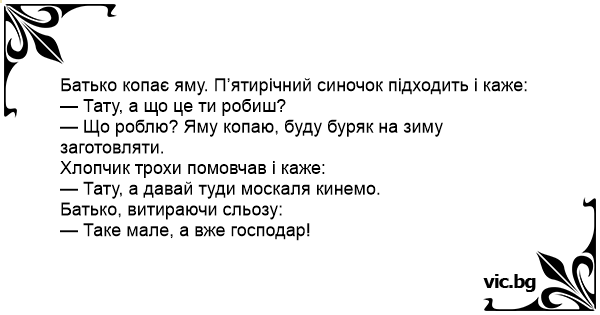 — Тату, а давай туди москаля кинемо.