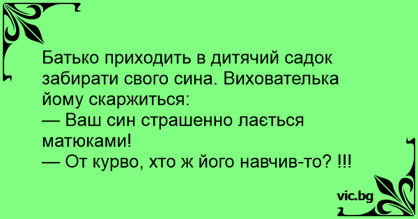 Батько приходить в дитячий садок забирати свого сина. Вихователька йому скаржиться: