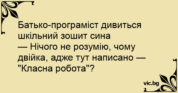 — Нічого не розумію, чому двійка, адже тут написано — "Класна робота"?