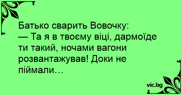 — Та я в твоєму віці, дармоїде ти такий, ночами вагони розвантажував! Доки не піймали…