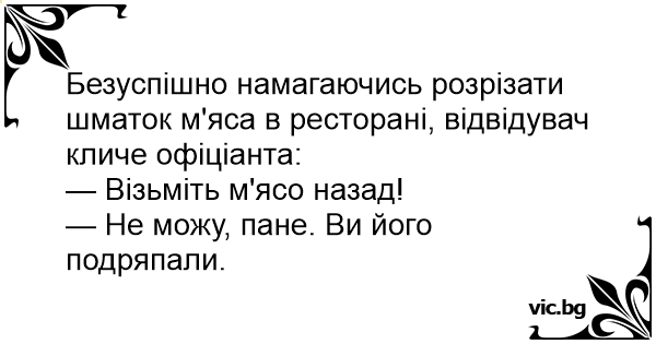 Безуспішно намагаючись розрізати шматок м'яса в ресторані, відвідувач кличе офіціанта: