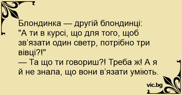 — Та що ти говориш?! Треба ж! А я й не знала, що вони в’язати уміють.