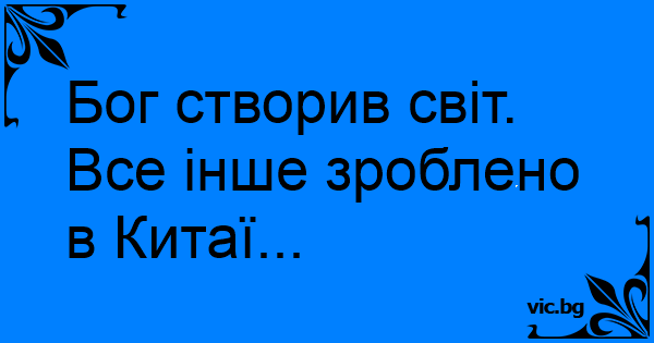 Бог створив світ. Все інше зроблено в Китаї...