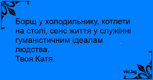Борщ у холодильнику, котлети на столі, сенс життя у служінні гуманістичним ідеалам людства.