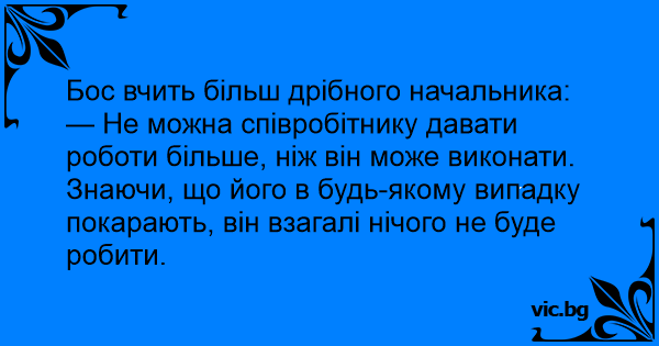 — Не можна співробітнику давати роботи більше, ніж він може виконати. Знаючи, що його в будь-якому випадку покарають, він взагалі нічого не буде робити.