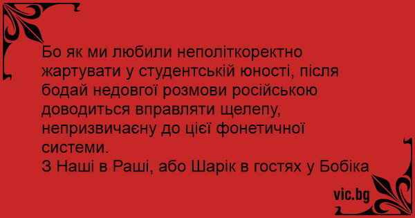 Бо як ми любили неполіткоректно жартувати у студентській юності, після бодай недовгої розмови російською доводиться вправляти щелепу, непризвичаєну до цієї фонетичної системи.