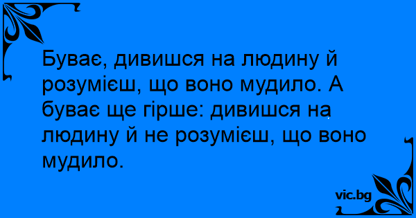 Буває, дивишся на людину й розумієш, що воно мудило. А буває ще гірше: дивишся на людину й не розумієш, що воно мудило.
