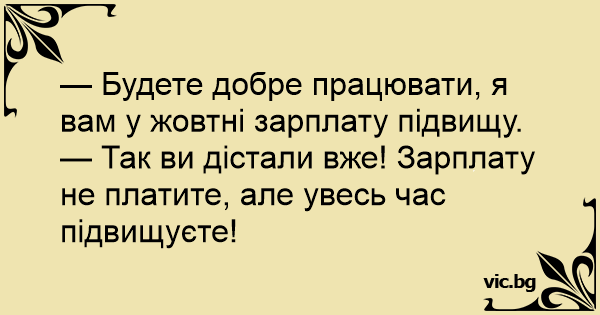 — Так ви дістали вже! Зарплату не платите, але увесь час підвищуєте!