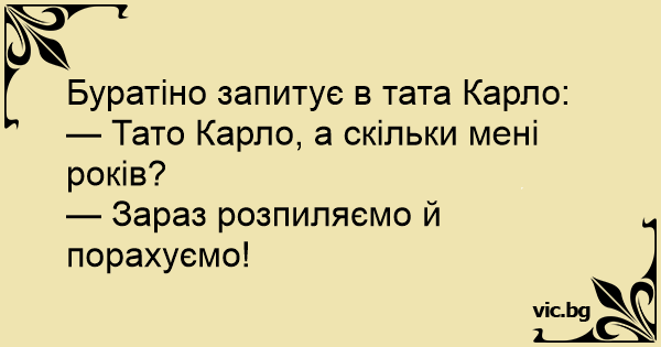 — Тато Карло, а скільки мені років?
