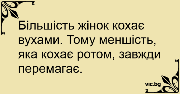 Більшість жінок кохає вухами. Тому меншість, яка кохає ротом, завжди перемагає.