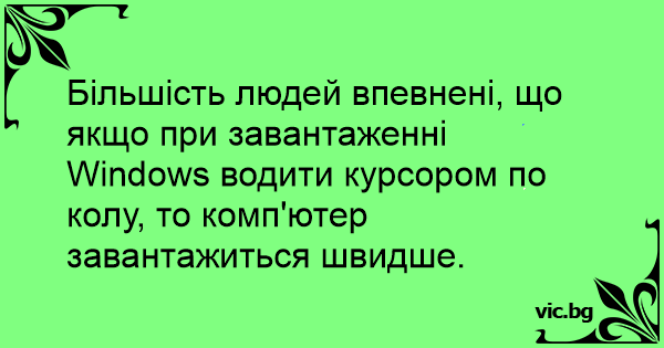 Більшість людей впевнені, що якщо при завантаженні Wіndоws водити курсором по колу, то комп'ютер завантажиться швидше.