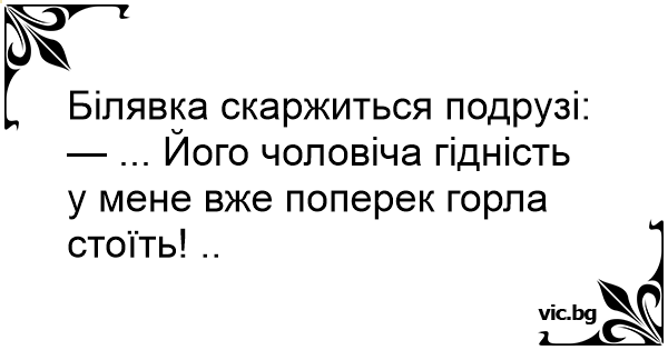 — ... Його чоловіча гідність у мене вже поперек горла стоїть! ..