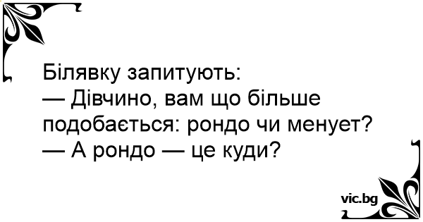 — Дівчино, вам що більше подобається: рондо чи менует?