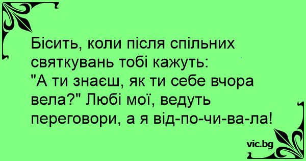 "А ти знаєш, як ти себе вчора вела?" Любі мої, ведуть переговори, а я від-по-чи-ва-ла!