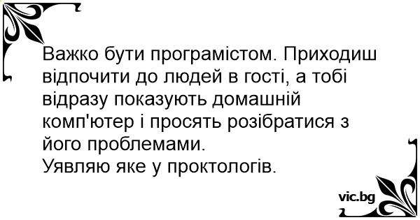 Важко бути програмістом. Приходиш відпочити до людей в гості, а тобі відразу показують домашній комп'ютер і просять розібратися з його проблемами.