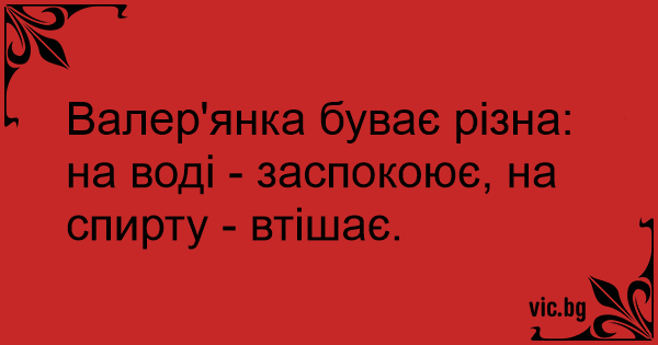 Валер'янка буває різна: на воді - заспокоює, на спирту - втішає.
