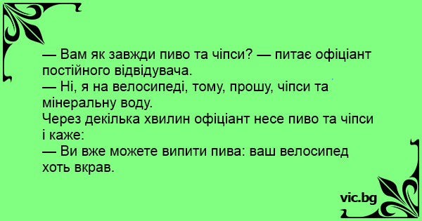 — Ви вже можете випити пива: ваш велосипед хоть вкрав.