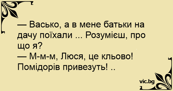 — М-м-м, Люся, це кльово! Помідорів привезуть! ..