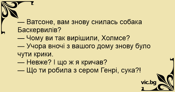 — Ватсоне, вам знову снилась собака Баскервилів?